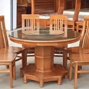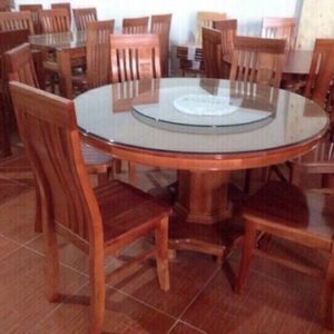 Bàn ăn gỗ sồi nga 6 ghế có bàn xoay